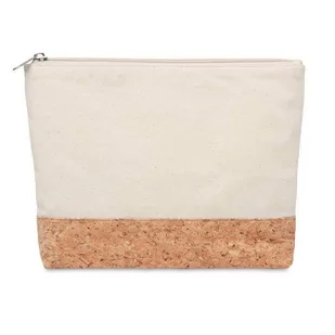 Kosmetyczka bawełniana z wykończeniem z korka. 220 gr/m². Korek jest materiałem naturalnym, ze względu na jego strukturalną naturę i porowatość powierzchni ostateczny wygląd nadruku na każdym artykule może się różnić. Wykonane zgodnie z certyfikowanym standardem dotyczącym stosowania szkodliwych substancji w tekstyliach. Wymiary: 24X5X17CM