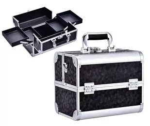 Kuferek kosmetyczny to świetny organizer nie tylko dla zawodowej kosmetyczki czy manikiurzystki, która dojeżdża do klientki. Przyda się każdej kobiecie która uwielbia dbać o swoje piękno zewnętrzne. Mocne ścianki i wzmocnione narożniki z aluminium chronią kosmetyki w transporcie. Kuferek jest bardzo ładny dlatego też warto wyeksponować go na toaletce lub komodzie obok lustra. Utrzymany w czarnej kolorystyce ze srebrnymi elementami wygląda bardzo klasycznie.