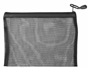 Dostępna w czarnym kolorze. Kosmetyczka. Z siateczkowego tworzywa. Do przechowywania drobnych kosmetyków. Można spakować ją do torebki, lub zabrać ze sobą w podróż.