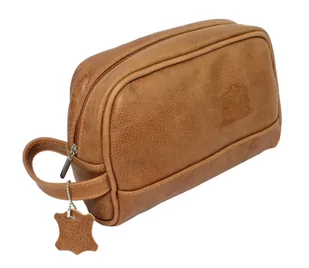 Skórzana Kosmetyczka Prostokątna MAGRE (PL) Skóra Naturalna Licowa Adrian DeLuxe JASNY BRĄZOWY Tekstura 24 x 17 x 10 [cm]