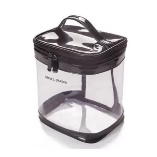 Cechy produktu: pojemna, praktyczna, wygodna. kolor: przezroczysty z czarnymi wstawkami materiał: pcv idealna widoczność nieprzemakalny materiał kieszonka z siatki na wieczku do przechowywania mniejszych kosmetyków wygodny uchwyt zapięcie na podwójny zamek idealna na wyjazdy oraz w domowej łazience przybliżony rozmiar: 19x 17x 14 cm