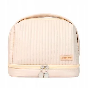 Rozmiar (wys x szer x gł): około 19,5x 22x 12,5 cm Wysokość wodoodpornej części; ok. 2,5cm kolor: beżowy materiał: poliuretan, pvc zamykane na zamek błyskawiczny, pojemna, starannie wykonana, wygodny uchwyt do przenoszenia, organizer na pędzle, dwie osobne komory waga: