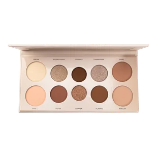 Paleta 10 cieni do powiek – ciepłe i neutralne odcieniePaleta zawiera 10 starannie dobranych, ciepłych i neutralnych odcieni, które idealnie sprawdzą się w makijażach ślubnych, dziennych oraz wieczorowych. Cienie są doskonale napigmentowane, łatwo się blendują i tworzą harmonijny efekt na powiece. Cechy produktu: 3 cienie błyszczące o niespotykanej formule – dają efekt pigmentu bez konieczności użycia kleju do brokatu. Mogą być aplikowane palcem lub pędzelkiem na dobrze przygotowaną powiekę (korek