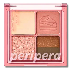 Peripera - Ink Pocket Shadow Palette Soda Café Collection Korzyści Kompaktowa paletka z czterema cieniami w matowych i błyszczących wykończeniach. Łatwo się miesza, gwarantując długotrwały efekt bez osypywania. Idealna do różnych stylizacji, wygodna do torebki lub podróży. Popularne składniki Mica – nadaje efekt świetlistości i połysku. Talc – zapewnia gładką aplikację i komfort noszenia.