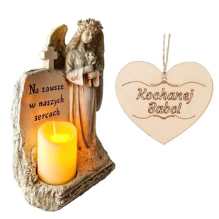 ZNICZ dla BABCI ANIOŁ STRÓŻ z napisem i świeczką led na GRÓB