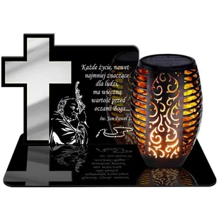 ZNICZ SOLARNY LED WIECZNY PODSTAWKA NA CMENTARZ GRÓB Krzyż EFEKT PŁOMIENIA