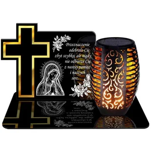 ZNICZ SOLARNY LED WIECZNY PODSTAWKA NA CMENTARZ GRÓB Krzyż EFEKT PŁOMIENIA