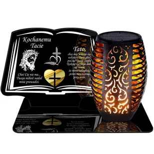 ZNICZ SOLARNY LED WIECZNY PODSTAWKA NA CMENTARZ GRÓB Księga EFEKT PŁOMIENIA DLA TATY