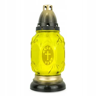 Znicz Szklany 26 cm Żółty DP736 Znicz z Krzyżem z Wkładem Wymiennym ✔ Wysokość: 26 cm ✔ Średnica otworu na wkład: 5,6 cm ✔ Maksymalna wysokość wkładu: 14,5 c...