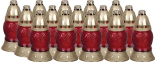 Znicz szklany 468CS - 8H 15szt. CZERWONY Znicze szklane w kolorze czerwonym. Zawierają wprasowane wkłady parafinowe o czasie palenia do 8 godzin. Znicze najw...