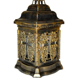 Znicz szklany w plastikowej obudowie kapliczka złoty 26 cm krzyż ADMIT