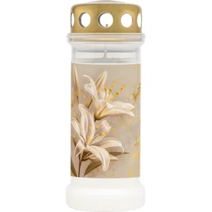 Znicz z ozdobną naklejką lilie 17,3 cm 70 h