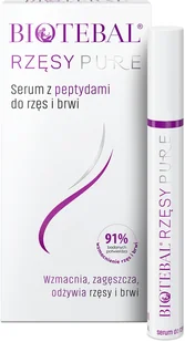 Biotebal Rzęsy Pure Serum z Peptydami do Rzęs i BrwiBiotebal Rzęsy Pure to aktywne serum wzmacniające, które intensywnie regeneruje i odżywia rzęsy oraz brwi. Regularne stosowanie sprawia, że włoski stają się pełniejsze, grubsze, bardziej sprężyste i odporne na wypadanie. Formuła oparta na peptydach, biotynie, pantenolu i ekstrakcie z alg morskich poprawia kondycję rzęs i brwi, wspiera naturalny wzrost, a także nadaje im zdrowy połysk i elastyczność. Biodostępny lipo-oligopeptyd wraz z Biotinoyl Tripeptide-1 stymulują mieszki włosowe, biotyna wspiera produkcję keratyny, a pantenol działa regenerująco i ochronnie. Biotebal Rzęsy Pure Serum to idealny wybór dla osób, które chcą w naturalny sposób podkreślić oprawę oczu.