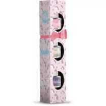 Zestaw 3 lakierów do paznokci marki Snails. Lakiery są całkowicie zmywalne oraz spieralne. Wystarczy umyć rączki wodą z mydłem aby zmyć kosmetyk bez potrzeby użycia zmywacza z acetonem. Trwałość lakieru można przedłużyć do 2 dni używając utwardzacza Top Coat. Kolorowa gumka z opakowania może być użyta jako bransoletka.