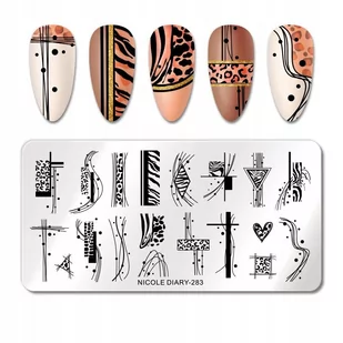 Płytka do stempli do zdobienia paznokci - Nicole Diary-283 Produkt: Blaszana płytka do zdobienia paznokci metodą stemplową Wymiary: 12x6 cm Kod producenta: NicoleDiary-283 Wzór: Panterka, cętki, zebra, tygrys, pantera, motywy zwierzęce, paski - jak na zdjęciu Ilość:
