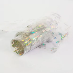 FOLIA TRANSFEROWA pasek ok 100 cm x 4 cm Pozwala w łatwy sposób osiągnąć oszałamiający efekt. Folię można kłaść na paznokcie w całości bądź też użyć jej elementów do stworzenia metalicznych wzorów. Do stosowania na lakierze hybrydowym bądź żelu. Naklejamy ją na warstwę dyspersyjną i pokrywamy nabłyszczaczem. Można dzięki nim osiągnąć efekt złotych, srebrnych, metalicznych, holograficznych paznokci, a także wiele innych, zależnie od potrzeby i fantazji.