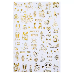 Naklejki do paznokci cienkie samoprzylepne walentynkowe złote Nr R398