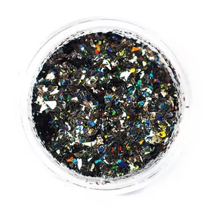 Efekt Magic SHARDS to lśniąca folia w formie płatków. Magic Shards dzięki swojej sypkiej strukturze, umozliwia aplikacje tylko na wybrane fragmenty paznokcia lub na cały paznokieć. Magic Shards jest bardzo prosty w aplikacji i można go stosować na wszystkie odcienie lakieru. Magic Shards 12 Odcień: czarny holograficzny Sposoby aplikacji: