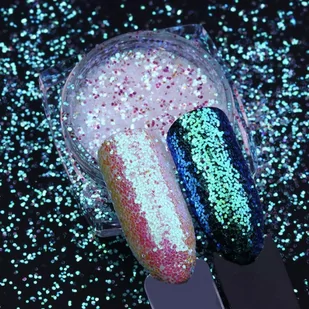 Efekt Pixie Dust to lśniący multikolorowy pyłek. Na paznokciach daje efekt iskrzących drobinek mieniących się wieloma kolorami! Ich odcień zmienia się w zależności od kąta padania światła. Efekt Pixie Dust jest bardzo prosty w aplikacji i można go stosować na wszystkie odcienie lakieru. Pixie Dust 04 Odcień: opalizujący na niebiesko Sposoby aplikacji: