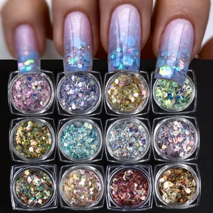 TEMU 12 Pudełek Aurora Cekiny do Paznokci - Y2K Holograficzne Sześciokątne Brokatowe Żelki, Gruby Błyszczyk do Manicure i Dekoracji, Akrylowe