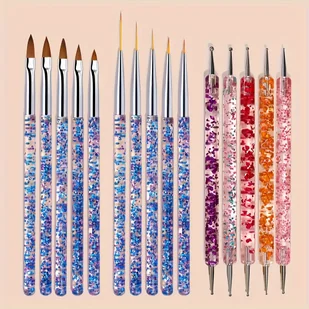 TEMU 15 szt. Zestaw Pędzli do Paznokci – Akrylowe, Żelowe, Ombre, Liner, Manicure, Malowanie, Długopisy z Podwójnymi Końcówkami, Różdżki do Proszku i