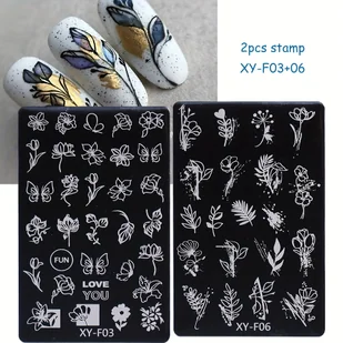 TEMU Dwa zestawy płytek do stemplowania paznokci w kwiaty na wiosnę, i jesień XY-F03+06