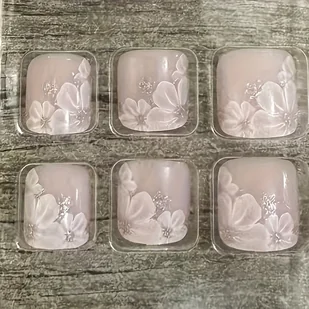 TEMU 24 szt. Ręcznie robione kwiatowe, brokatowe, prasowane paznokcie - kwadratowe, krótkie, wielokrotnego użytku naklejki do manicure z różowymi