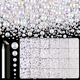 TEMU 8600 szt. Duża Ilość Płaskich Koralików Białych AB z Efektem Irydysacyjnym, Rozmiary 3/4/5/6/8/ do DIY, Manicure, Biżuterii, Dekoracji Ubrań i