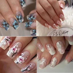 TEMU 96 szt. 4 szt. Brokatowe Fale Paski Błyszczące Francuski Minimalistyczny Kwadratowy Niebieskie Czarodziejka Wzór Kwiatowy Jednolity Białe Kwiaty