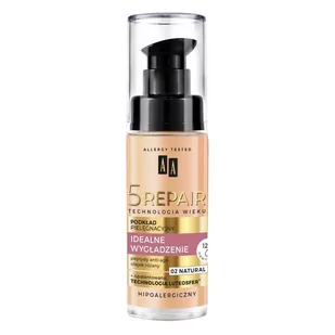 5 Repair to podkład marki AA o działaniu pielęgnującym oraz wygładzającym. Formuła zawiera przeciwzmarszczkową Technologię Luteosfer, peptydy i olejek z dzikiej róży, które w połączeniu dbają o zdrowy wygląd i poprawną kondycję skóry. Produkt zmniejsza widoczność niedoskonałości, a także zmarszczek, pozostawiając skórę wygładzoną. Producent zapewnia naturalne wykończenie oraz nawilżenie nawet do 12 godzin.
