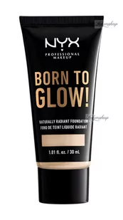 BORN TO GLOW - NATURALLY RADIANT FOUNDATION marki NYX Professional Makeup. Podkład do twarzy. Polecany do każdego typu cery, a szczególnie normalnej. Posiada lekką, kremową konsystencję, która nie obciąża cery. Doskonale sprawdzi się jako zamiennik kremów BB, a dodatkowo ma znacznie lepsze średnie krycie.