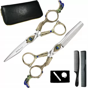 WOLF zestaw fryzjerski degażówki i nożyczki praworęczne 5,5 Flame + futerał grzebienie offset fryzjerskie do strzyżenia włosów do salonu linia Professional
