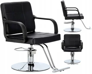 Fotel charakteryzuje się eleganckim i ergonomicznym designem, który pozwala na wygodną pracę fryzjera oraz relaks klientów.