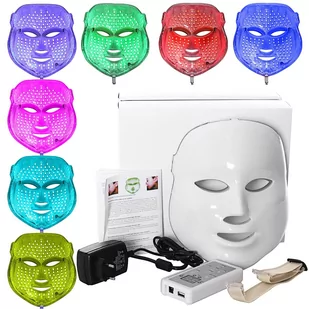 usuwanie trądziku, wzmacnianie naczyń krwionośnych, przyspieszenie regeneracji skóry, stymulacja syntezy kolagenu, rozjaśnianie przebarwień, łagodzi podrażnienia i przyspieszenie gojenia skóry, po zabiegach oczyszczania, mezoterapii mikroigłowej i igłowej. Maska LED wyposażona jest w siedem kolorów: czerwony, niebieski, jasnoniebieski, zielony, fioletowy, żółty i biały. Kolor czerwony (650-730nm): stymuluje skórę do wzmożonej produkcji kolagenu i elastyny, co pomaga zredukować zmarszczki i poprawić jędrność skóry.
