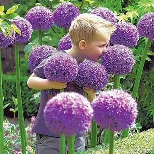 Allium Czosnek polski Globemaster XXL 1 szt. 26/+ Specyfikacja rośliny: Kolor: fioletowy Okres kwitnienia: VI Rozstawa sadzenia: 20-25 cm Termin sadzenia: IX...
