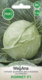 KAPUSTA BIAŁA HORNET 0,5g - WegAna Odmiana bardzo wczesna (okres wegetacji od wysadzenia do zbioru 57-62 dni), polecana do uprawy pod osłonami oraz najwcześn...