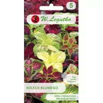 Nasiona Koleusa Standart marki Legutko. Koleus standart to roślina ozdobna, silnie krzewiąca się wys. 25-35 cm o różnobarwnych, dekoracyjnych liściach. Wysiew nasion w marcu do skrzynek. Siewki w fazie 1 pary liści pikować w rozstawie 5x5 cm lub do doniczek.
