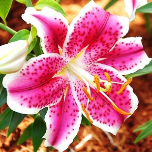 Lilia orientalna Starfighter XXL (20/+) 1 szt. Specyfikacja rośliny: Kolor: różowo-biała Okres kwitnienia: VII-VIII Rozstawa sadzenia: 20 cm Termin sadzenia:...