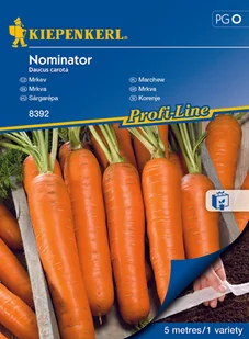 Marchew Nominator F1 Na Taśmie Marchew 'Nominator' F1 to odmiana o jednolitych, cylindrycznych marchewkach o długości 16–20 cm, charakteryzująca się odpornoś...