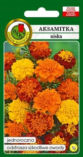 NASIONA AKSAMITKA PEŁNA NISKA MIX NASION 0,2G 463 Kwiaty pełne w kolorach: żółty, złoty, pomarańczowy i brązowy. Wysiew: IV pod osłonami V wprost do gruntu S...