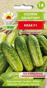 Ogórek gruntowy KRAK F1 (średnio wczesny) Odmiana średnio wczesna, typu konserwowego dobra również do kwaszenia, wyróżniająca się wysoką zdrowotnością i plen...