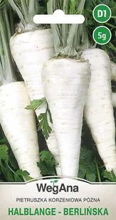 PIETRUSZKA KORZENIOWA HALBLANGE – BERLIŃSKA 5g - WegAna Odmiana pietruszki korzeniowej, późna. Tworzy korzenie w kształcie wydłużonego stożka o długości ok. ...
