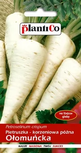 Nasiona warzyw marki PlantiCo. Pietruszka korzeniowa Ołomuńcka. Odmiana późna (liczba dni od siewu do zbioru 180-200). Dobrze plonuje na glebach lekkich, odporna na dłuższe okresy suszy. Korzeń długi, spiczasto zakończony, bez wyraźnego poprzecznego prążkowania, bez skłonności do tworzenia bocznych rozgałęzień.