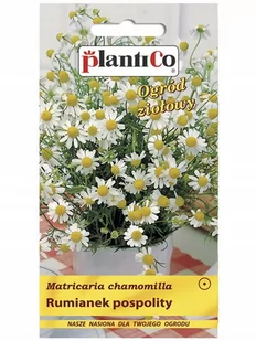 Nasiona ziół marki Plantico. Rumianek pospolity. Roślina jednoroczna. Surowcem są rozwinięte koszyczki kwiatowe, które posiadają silny zapach i korzenny, nieco gorzki smak. Napar z koszyczków używa się do picia codziennej herbatki, również w celach leczniczych przy zaburzeniach żołądkowych jako środek żółciotwórczy i wiatropędny.
