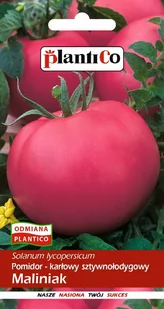 Jedyna odmiana pomidora malinowego, karłowego gruntowy, malinowy, sztywnołodygowy owoce tej odmiany dojrzewają po około 75-85 dniach od wysadzenia rozsady na miejsce stałe odmiany sztywnołodygowa, może być uprawiana bez podpór. Maliniak odznacza się bardzo dużą plennością i podpieranie jest wskazane, ponieważ pędy pod ciężarem owoców mogą się pokładać zawiązuje owoce sporych rozmiarów, których masa wacha się od 80 do 100 g. Owoce kuliste, lekko spłaszczone i żeberkowane, piętka prawie nie jest widoczna dojrzałe maja ładny malinowy kolor, ich miąższ jest ładnie wybarwiony i zawiera spore ilości soku, a przede wszystkim odznacza się wyśmienitym smakiem. Pomidory te najchętniej są jedzone bezpośrednio po zbiorze, jako świeży dodatek do sałatek i kanapek pomidor jest roślina ciepłolubną, może być uprawiany w gruncie jedynie w okresie gdy nie występują mrozy Jak i kiedy wysadzamy: wysiew (k.III-poł.IV) rozsada: