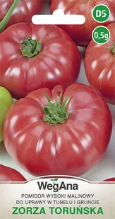 POMIDOR ZORZA TORUŃSKA 0,5g - WegAna Pomidor wysoki malinowy przeznaczony do uprawy w tunelach i gruncie. Smaczny i obficie plonujący. Odmiana wczesna, wysok...