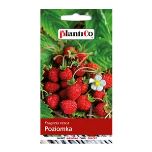 Nasiona poziomki marki PlantiCo. Poziomka bezrozłogowa. Roślina wieloletnia, o długim okresie owocowania i cennych właściwościach smakowych, dietetycznych i odżywczych. Zarówno świeże owoce jak i liście (suszone używane do sporządzania naparów) są bogate w witaminę C, karoteny, cukry, makro i mikroelementy, glikozydy. Z tego względu wykorzystywane są w leczeniu m.