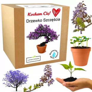 Zestaw do uprawy Bonsai Paulownia Cesarska - Prezent na Walentynki Kocham Cię! Łatwy w uprawie i utrzymaniu Paulownia cesarska lub inaczej drzewko szczęścia to niezwykle dekoracyjne i okazałe drzewo. Według feng-shui obdarzone jest wyjątkowo dobrą energią. Zdobiło cesarskie ogrody, a w Japonii jego wizerunki umieszczano na najważniejszych odznaczeniach państwowych. Kwiaty paulowni przybierają barwę liliowoniebieską, nieco jaśniejszą w środku. Ich dodatkową zaletę stanowi słodki, przyjemny zapach.