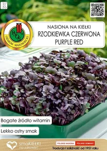 RZODKIEWKA CZERWONA PURPLE RED NASIONA NA KIEŁKI BEZ GMO 5g Informacje ogólne: Gatunek: rzodkiewka czerwona Gramatura: 5g Wymiary torebki: 11,5 x 16,0 cm ✅ 3...