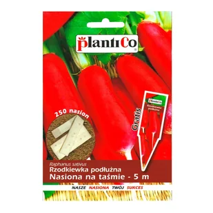 Rzodkiewka podłużna Nasiona na taśmie długości 5 m. Nasiona na taśmie ułatwiają wysiew do gruntu. Równomierne rozmieszczanie nasion eliminuje potrzebę przerywki wschodów. Najważniejsze jest, aby obficie podlewać. Dzięki temu taśma celulozowa może się rozpuścić i nasiona zaczynają kiełkować.